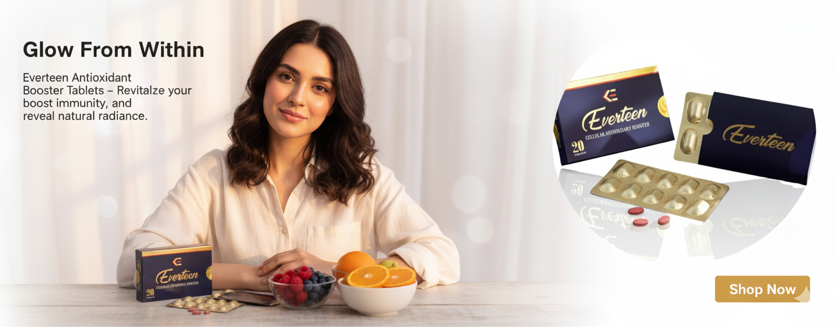 Everteen Tablets provide powerful antioxidant functions, protecting the skin from oxidative stress and free radical damage. They also help lighten and brighten the skin, reducing the appearance of dark spots and uneven pigmentation